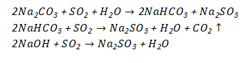 NaHSO3不再具有吸收SO2的能力,因此式是主要的吸收反應,而實際的吸收劑為Na2SO3。