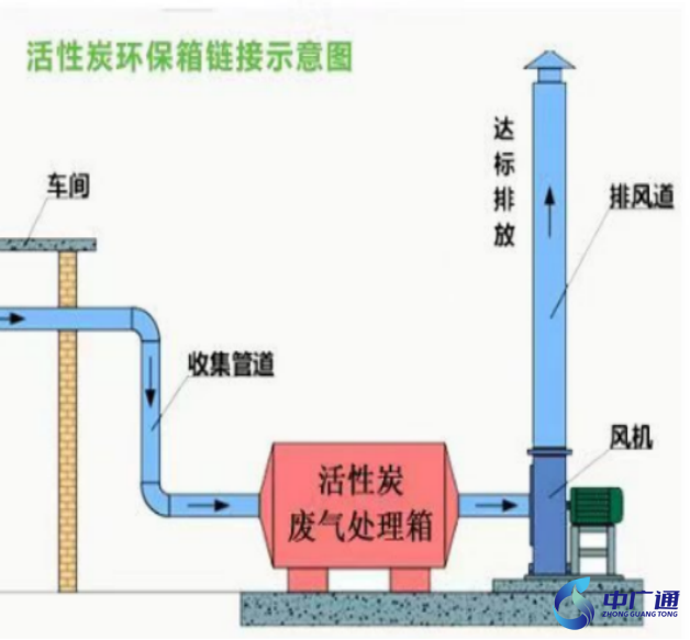 本設計擬采用活性炭吸附一體化凈化設備,主要包括:干式過濾+吸附裝置,廢氣在風機作用下,通過管道系統干式預過濾裝置至最近的活性炭吸附床,經過活性炭吸附處理干凈達標排放。
